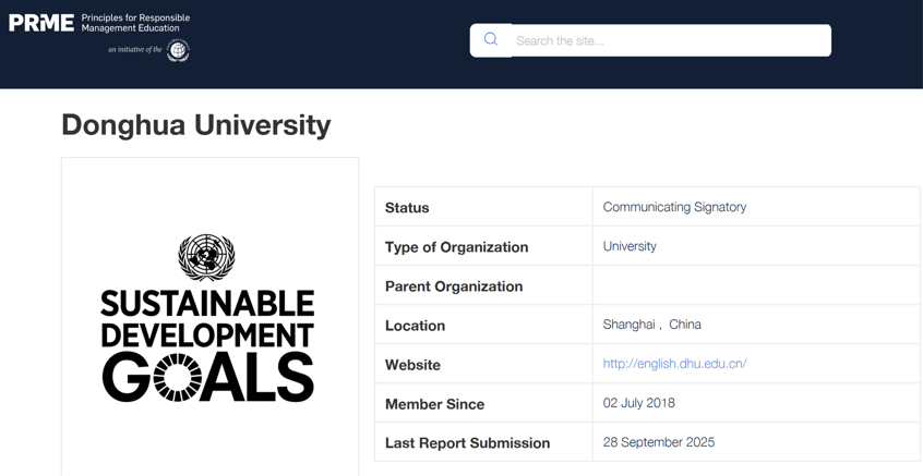 2018年6月,东华大学正式加入PRME倡议组织,与全球成员共享责任管理教育的研究和实践成果,为中国和全球的经济发展和社会进步贡献卓越智慧。