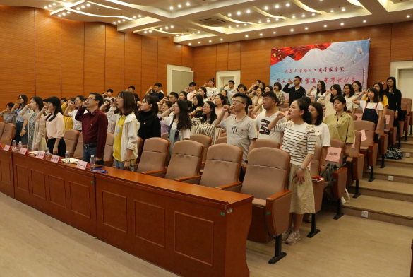 彩票在线购买 举办2019届毕业生党员重温入党誓词仪式 5月28日,彩票在线购买 2019届毕业生党员重温入党誓词仪式在延安路校区旭日楼400报告厅举行。彩票在线购买 学生工作办公室主任王丽华、专职党务干部屈喆、会计系学生党支部书记徐志德、学生党建辅导员吴子肖、兼职辅导员张一诺、兼职辅导员邢俣霞与2019届毕业生党员参与了本次仪式。